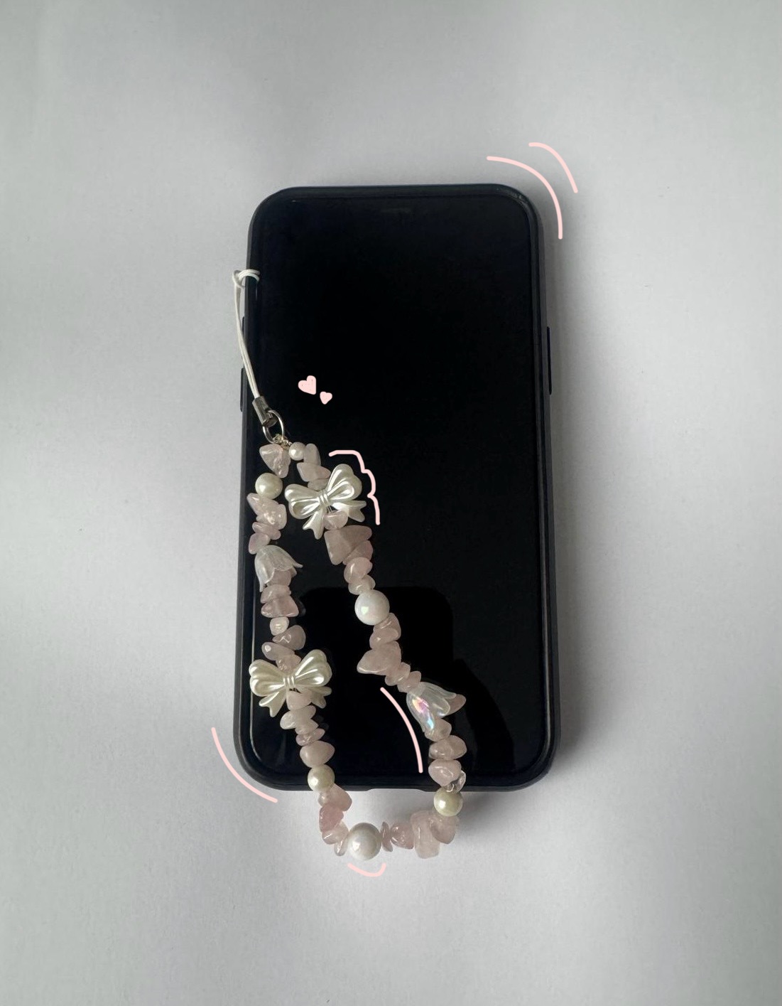 Pink phone charm.